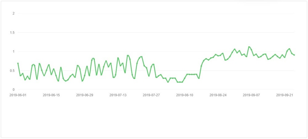 As can be seen in the below graph, profitability ranges between 0.20% and 1% of daily gain. Which is a fairly profitable investment if we consider the tremendous competition in the internet advertising market.