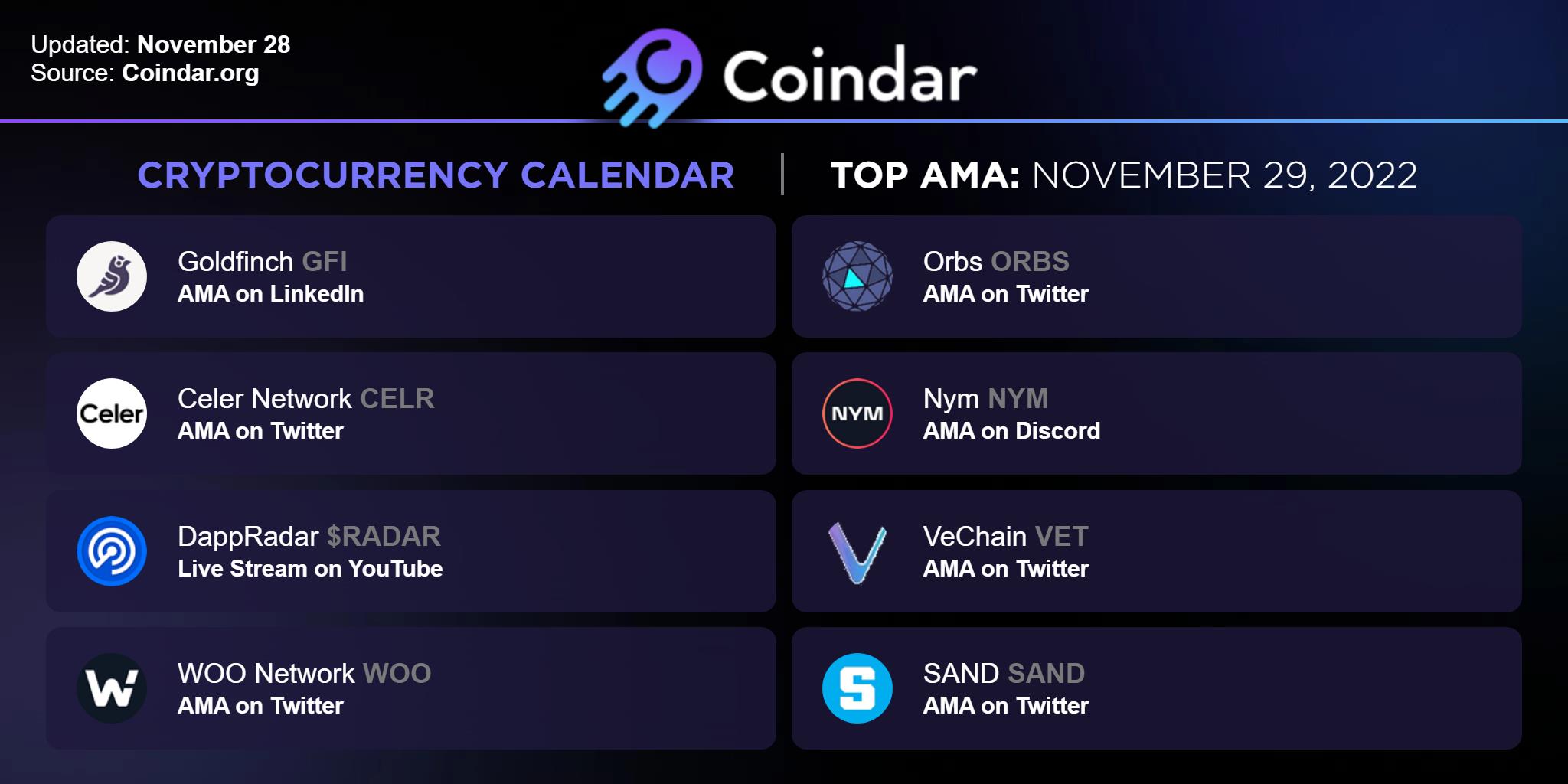 Here are the top AMAs on cryptocurrency on November 29, 2022: