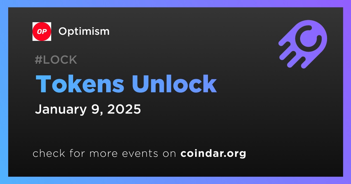 Optimism will unlock 4,470,000 OP tokens on January 9th, constituting approximately 0.33% of the currently circulating supply.