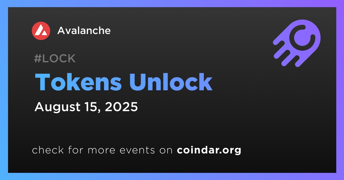 Avalanche will unlock 1,670,000 AVAX tokens on August 15th, constituting approximately 0.40% of the currently circulating supply.