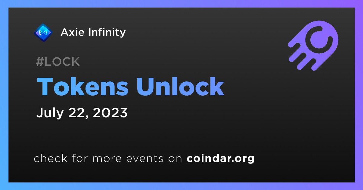 Axie Infinity will unlock 3,430,000 AXS tokens on July 22nd, constituting approximately 2.96% of the currently circulating supply.