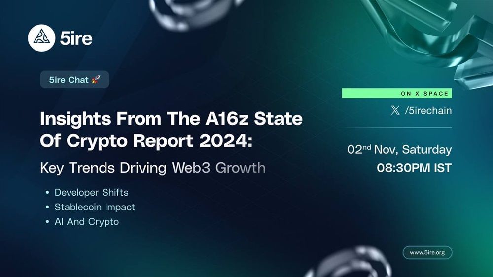 5ire will host a community call on X on November 2nd at 3:00 PM UTC. The discussion will cover highlights from the a16z crypto report and explore developer momentum in multichain growth.