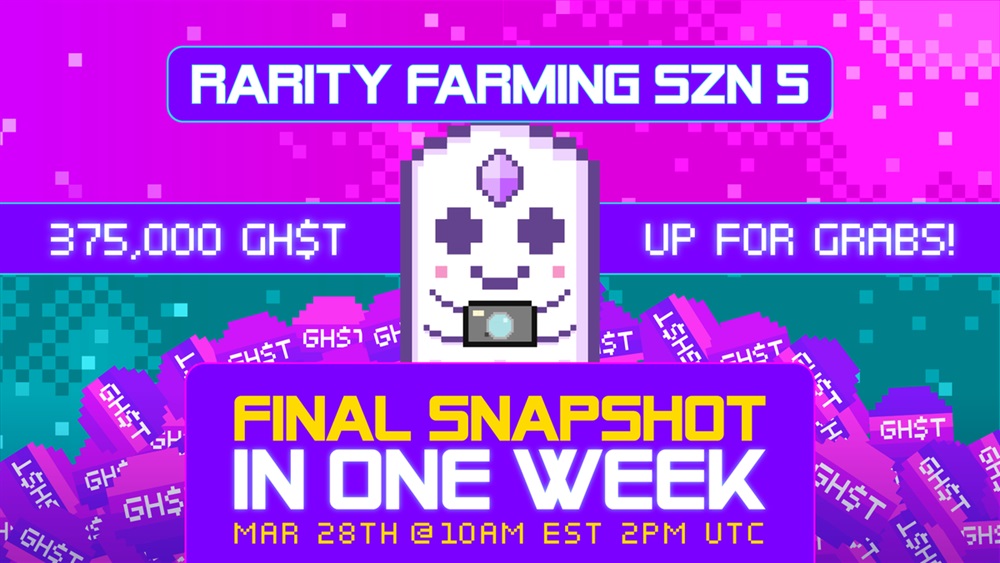 🚀 375k $GHST is up for grabs for the last snapshot of Rarity Farming Season 5