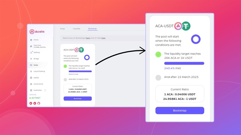 The new bootstrapping for the ACA-USDT pool recently launched on the Acala dApp and has already met it's liquidity target! Launch date is set for march 15th.