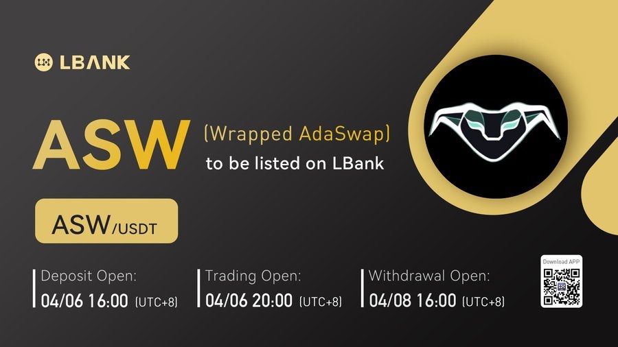 ✨ $ASW(Wrapped AdaSwap) will be listed on LBank! @adaswapapp