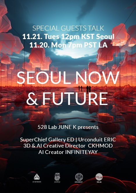🚀 Join the "Seoul Now and Future" Twitter Space on nov 21 (tue) 12pm KST with AI innovators: 528 Lab's June K | SR 💎🌸🔴, SuperchiefGalleryNFT's Edward Zipco, MOTIVATE 📲 Available for Consulting & Marketing of Urconduit Presents..., 3D and AI Creative Director CKHMOD, and AI Creator & TIMEPieces Artist INFINITEYAY✨.🔥