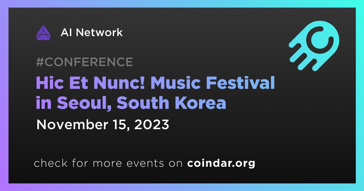 AI Network will participate in the Hic Et Nunc! Music Festival which will be held in Seoul on November 15th.
