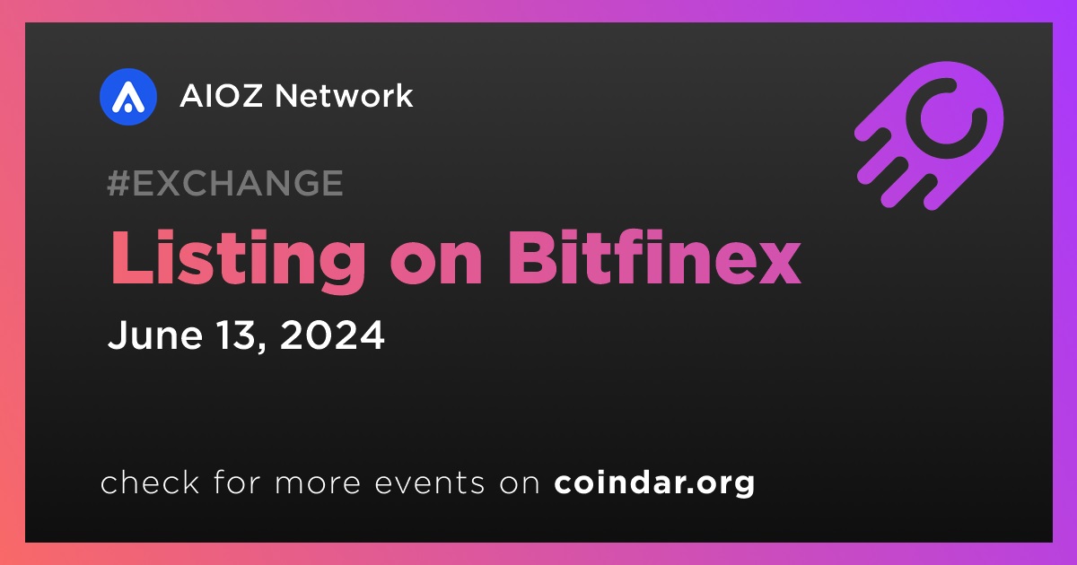 Bitfinex will list AIOZ Network (AIOZ) on June 13th at 10:00 UTC.