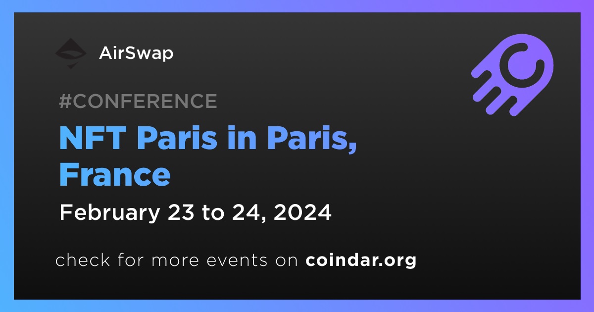 AirSwap is set to participate in the NFT Paris conference, taking place in Paris on February 23rd-24th.
