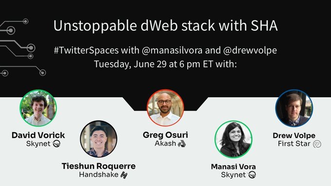 Tomorrow we'll be at the Unstoppable #DeWeb stack #TwitterSpaces event with @HNS and @SkynetLabs.