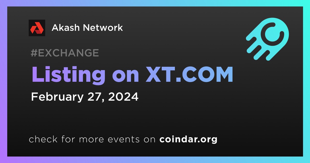 XT.COM will list Akash Network (AKT) on February 27th under the AKT/USDT trading pair.