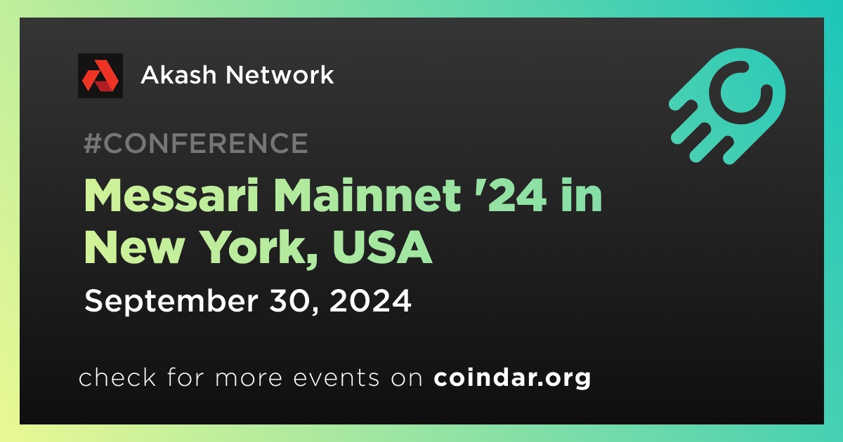Akash Network will participate in the Messari Mainnet '24 on September 30th. The core team of Akash and the community will be present at the event.