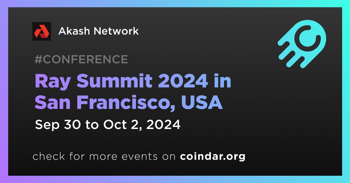 Akash Network is set to attend the Ray Summit 2024 in San Francisco from September 30th to October 2nd. The event will provide an opportunity for the team to discuss the capabilities of the Akash Supercloud, particularly its suitability for running Ray.