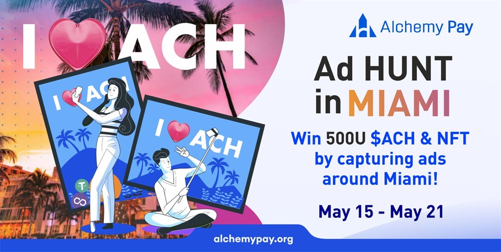 #AlchemyPay is thrilled to announce our ad hunt event from May 15th to May 21st in 5 locations across #Miami. Join us for a chance to win 500U and exclusive #NFTs!