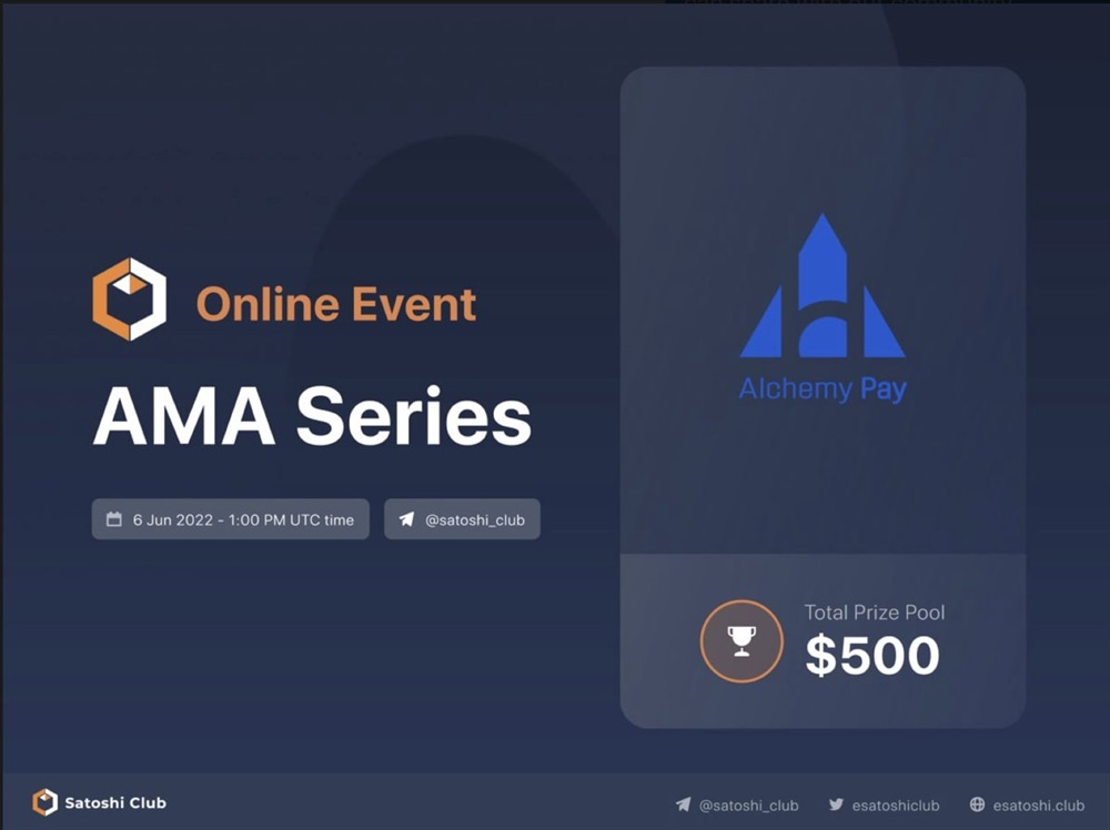 🗣 Alchemy Pay's CEO, John Tan will be speaking on @esatoshiclub's Telegram AMA on June 6th 2022 at 01:00 PM UTC