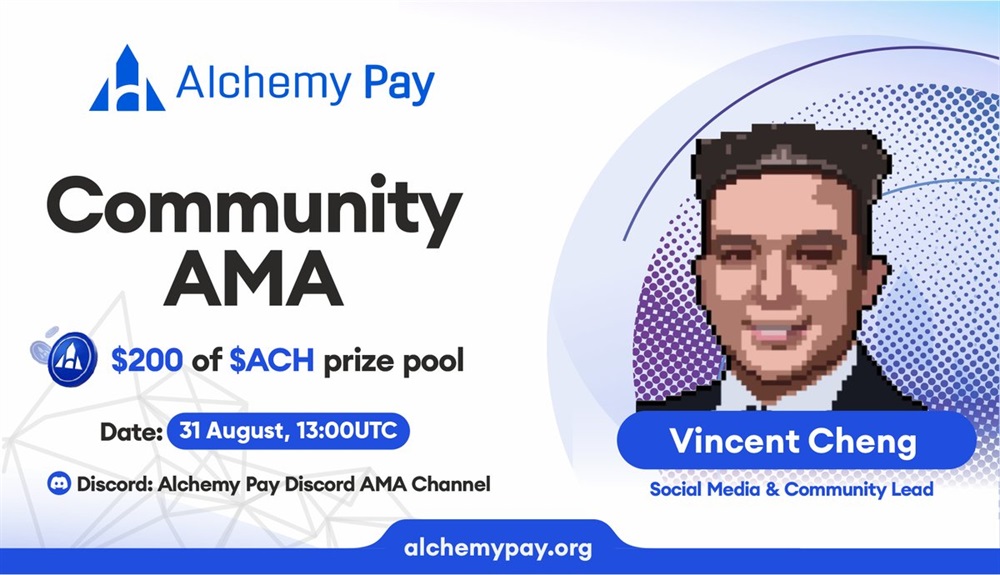 Alchemy Pay will host an AMA on Discord on August 31st. The event will feature a competition where the top 10 questions will be rewarded with a share of $200 in ACH.