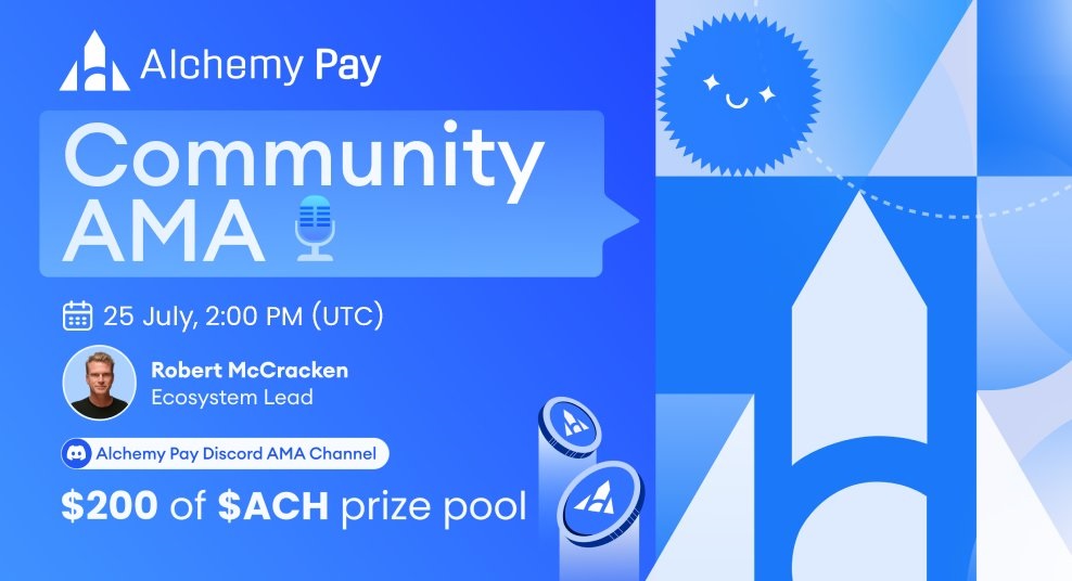 Alchemy Pay is set to host an AMA on Discord on July 25th at 14:00 UTC. The session will focus on the latest updates from the company. A reward pool of $200 in ACH tokens will be shared among the participants who ask the 10 best questions.