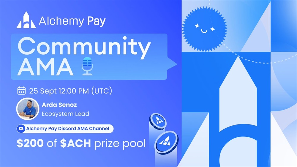 Alchemy Pay will hold an AMA on Discord on September 25 at 12:00 UTC, offering a $200 ACH prize pool for the 10 best questions about the latest update. Participants must follow Alchemy Pay on social media, retweet, tag three friends, and submit their questions to join.