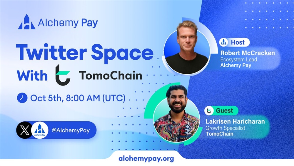 Alchemy Pay will host an AMA on X on October 5th at 8:00 am UTC. The event will involve a giveaway where 18 lucky winners will have the chance to share 300 TOMO.