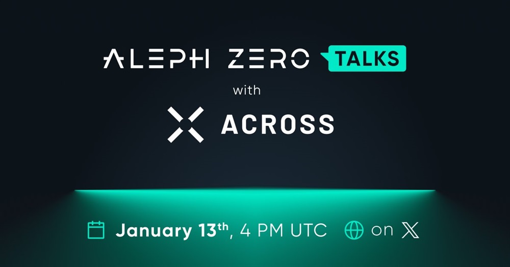 Aleph Zero will host an AMA on X on January 13th at 4 PM UTC. The event will delve into Across Protocol, a fast and cost-efficient bridge. The focus will be on how it integrates with zkOS for privacy-enabled cross-chain operations.