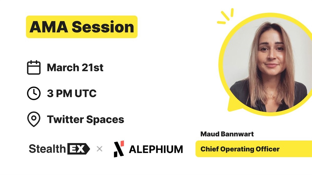 Alephium will host an AMA on X in collaboration with StealthEX on March 21st at 3 PM UTC. The event will feature the chief operating officer (COO) of Alephium who will be answering questions about the project.
