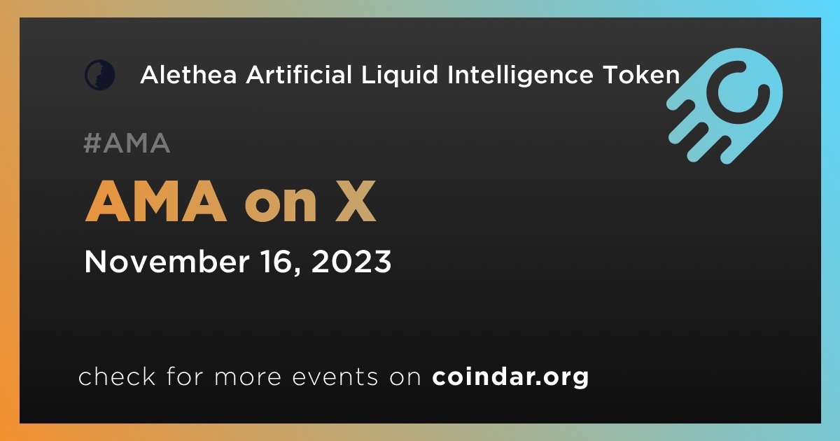 Alethea Artificial Liquid Intelligence Token will host an AMA on X on the latest updates and developments in the field of artificial intelligence. The event is scheduled to take place on November 16th at 19:00 UTC.