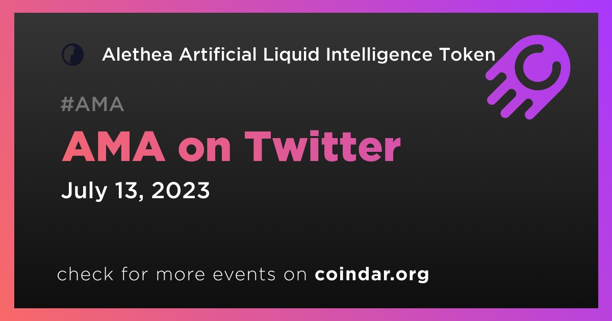 Alethea Artificial Liquid Intelligence Token will host an AMA on Twitter on July 13th, at 18:00 UTC. The purpose of this event is to explore the potential of Tokenized AI agents (iNFTs) and examine the intersection of AI, NFTs, and Blockchains.