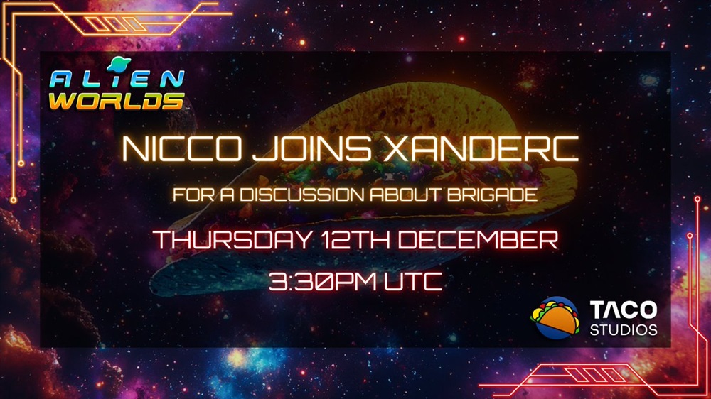 Alien Worlds will host a live stream on Twitch on December 12th at 15:30 UTC, focusing on Brigade and future game development.