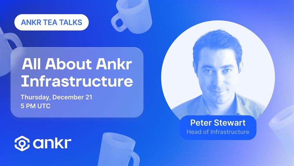 Ankr will host an AMA on Discord on December 21st at 16:00 UTC. The event will feature Peter Stewart, the head of infrastructure at Ankr. The discussion will revolve around the infrastructure of Ankr and the thought process behind it.