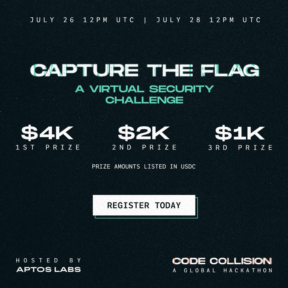 Aptos is hosting the Code Collision CTF Security hackathon from July 26 to July 28. The participants will have the opportunity to test their skills in this ultimate security challenge. The total prize pool for the event is $7000.