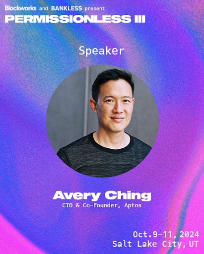 Avery Ching, Co-Founder and CTO of Aptos Labs will participate in the Permissionless III conference in Salt Lake City from October 9 to 11, 2024. On October 10, he will join a panel titled “The Convergence & Aggregation of L1s” alongside executives from Monad, Bera Chain, and Ava Labs. The panel will be moderated by Ishan Bhaidan, Co-Founder and CRO at Scrib3.