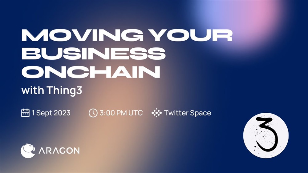 Aragon will host an AMA on X with the team from Thing3, a network of professionals specializing in web3-native operations. The event is scheduled to take place on the 1st of September at 3 pm UTC.