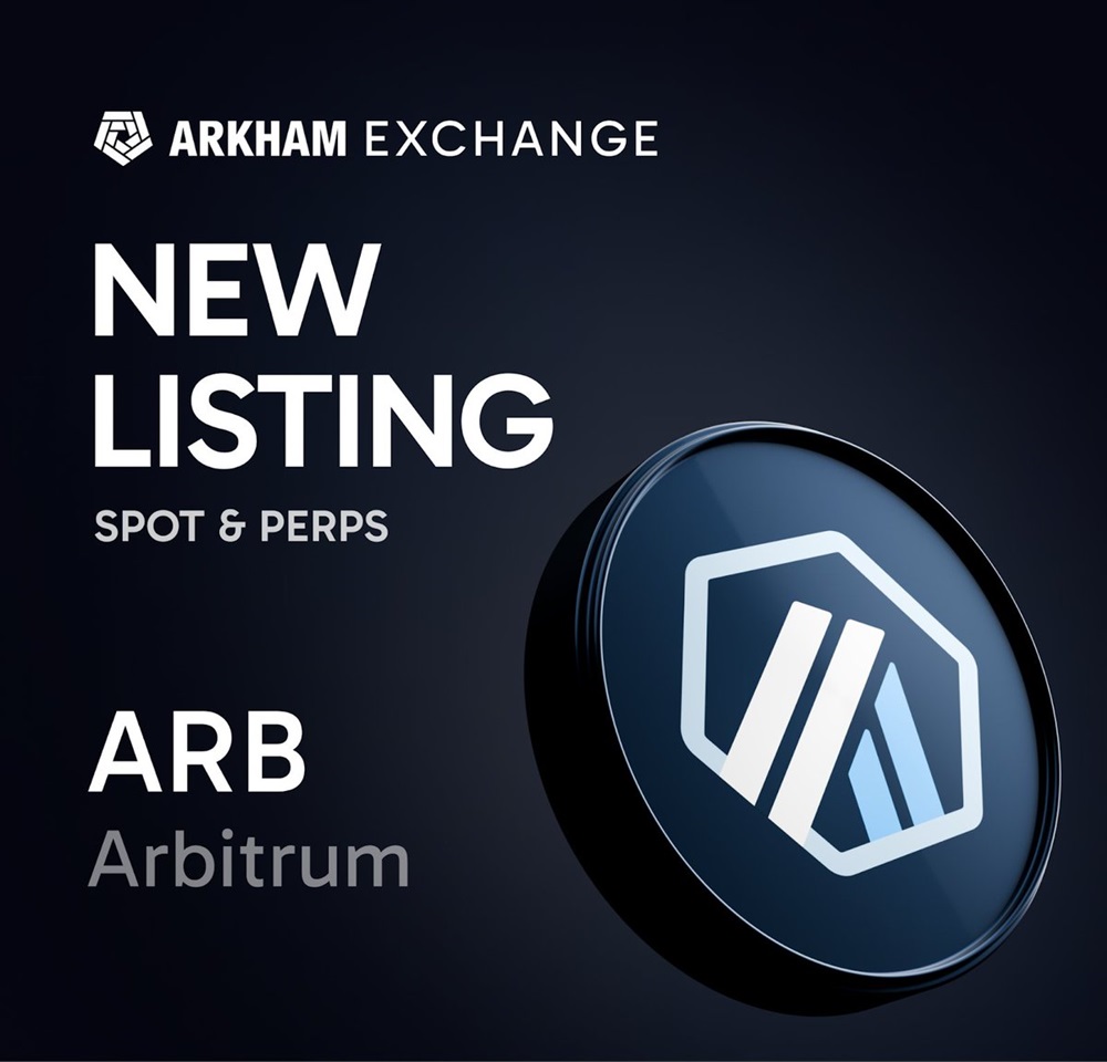 Arkham Exchange will list Arbitrum (ARB) on March 18th at 17:00 UTC.