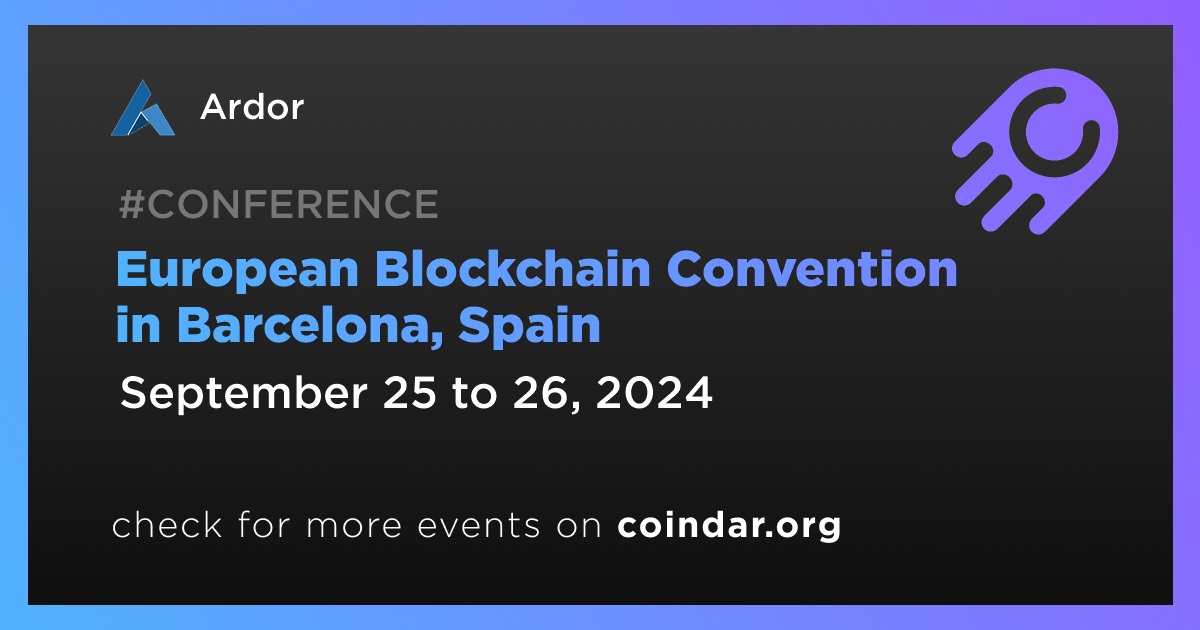 Ardor is set to be at the European Blockchain Convention in Barcelona from September 25 to 26.
