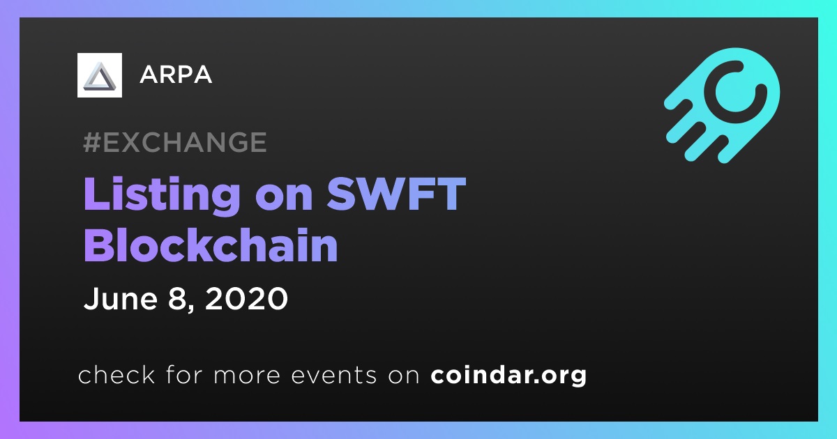 We are excited to announce that $ARPA is listed on #SWFT! @SwftCoin👏👏