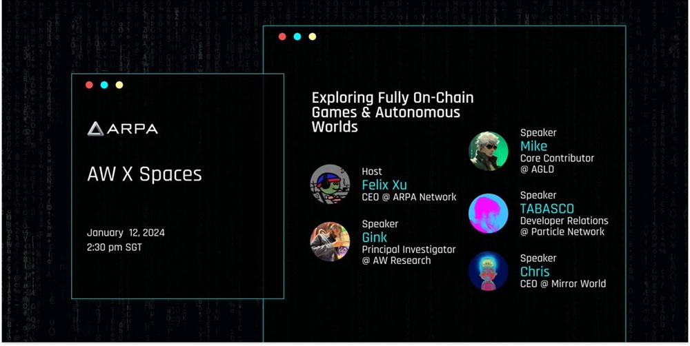 ARPA will host an AMA on X on January 12th at 6:30 UTC. The speakers for the event include representatives from ARPA Official, AW Research, Adventure Gold DAO, Particle Network, and Smart Platform.