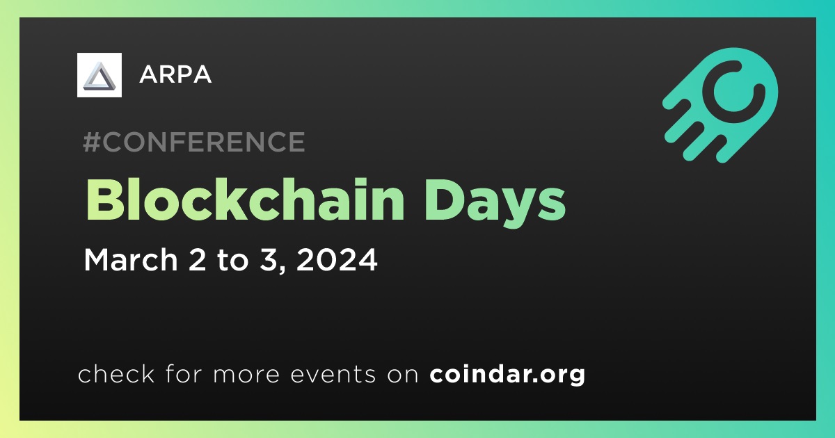 ARPA will participate in Blockchain Days, taking place on March 2nd-3rd. The event offers a platform for insightful discussions and networking opportunities.