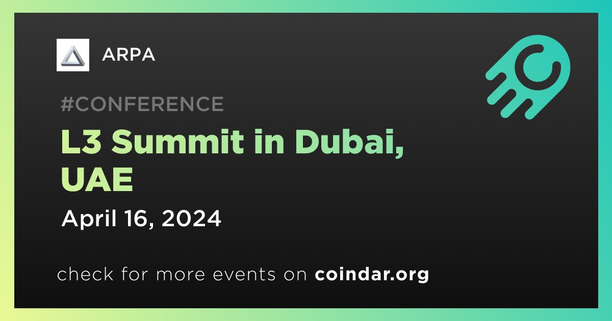 🌟 As a proud Diamond Sponsor of the #L3Summit in Denver, ARPA Official is thrilled to continue our support for the upcoming L3 Summit | Dubai Token 2049 in Dubai! 🚀
