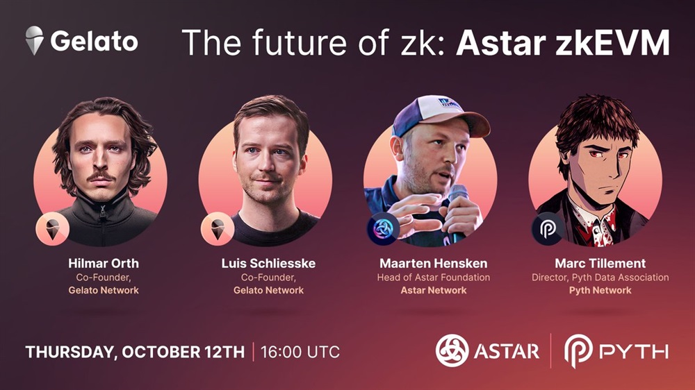 Astar will hold an AMA on X with Gelato and Pyth Network on October 12th. The focus of the discussion will be on why zero knowledge (ZK) is seen as the future of web3 scaling. They will also discuss industry-disrupting features such as native account abstraction.
