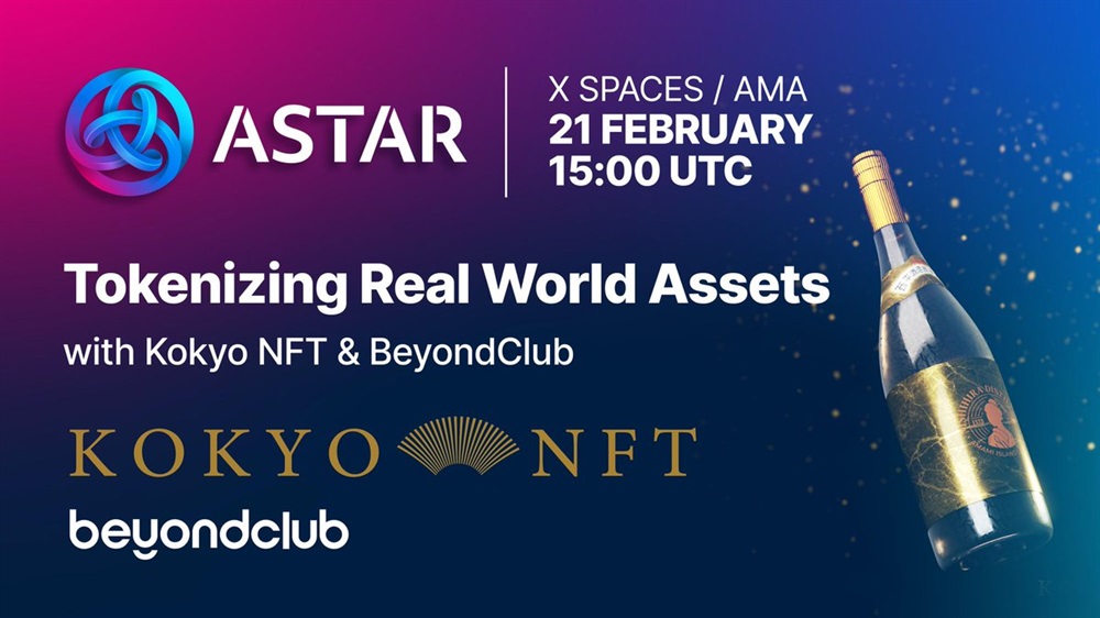 Astar will host an AMA on X with KOKYO NFT, a project produced by Japan Airlines and Hakuhodo. The discussion will focus on the increasing adoption of digital twins and tokenized Real World Assets (RWAs) in Japan. The event is scheduled to take place on February 21st.