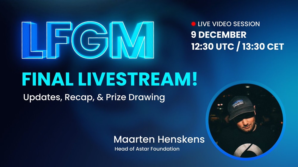 Astar will hold a live stream on YouTube on December 9th at 12:30 UTC. The event will feature the head of Astar foundation, Maarten Henskens, who will provide insights on Astar and upcoming developments for the Soneium community.