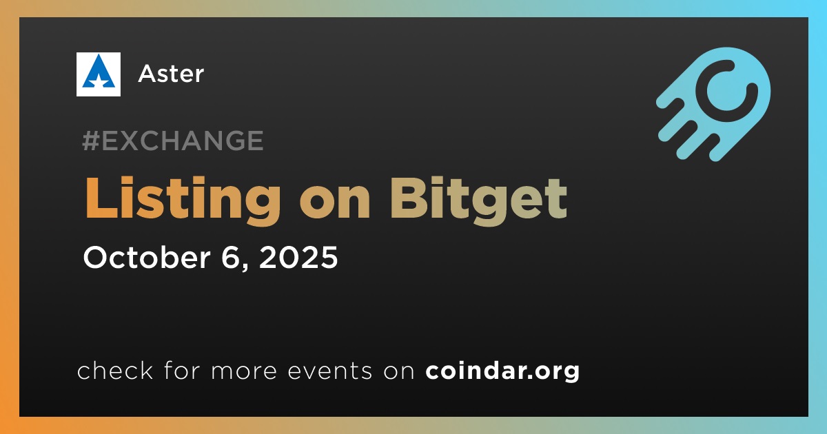 Bitget will list Aster under the ASTER/USDT trading pair on October 6th.