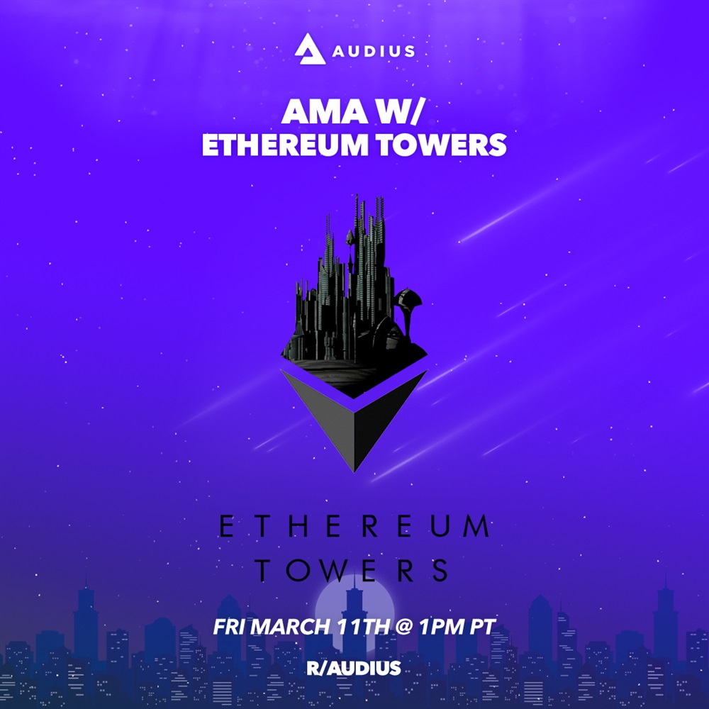 The @EthereumTowers team will be live on r/audius for an AmA to discuss the metaverse, their project, & the web3 ecosystem 💥