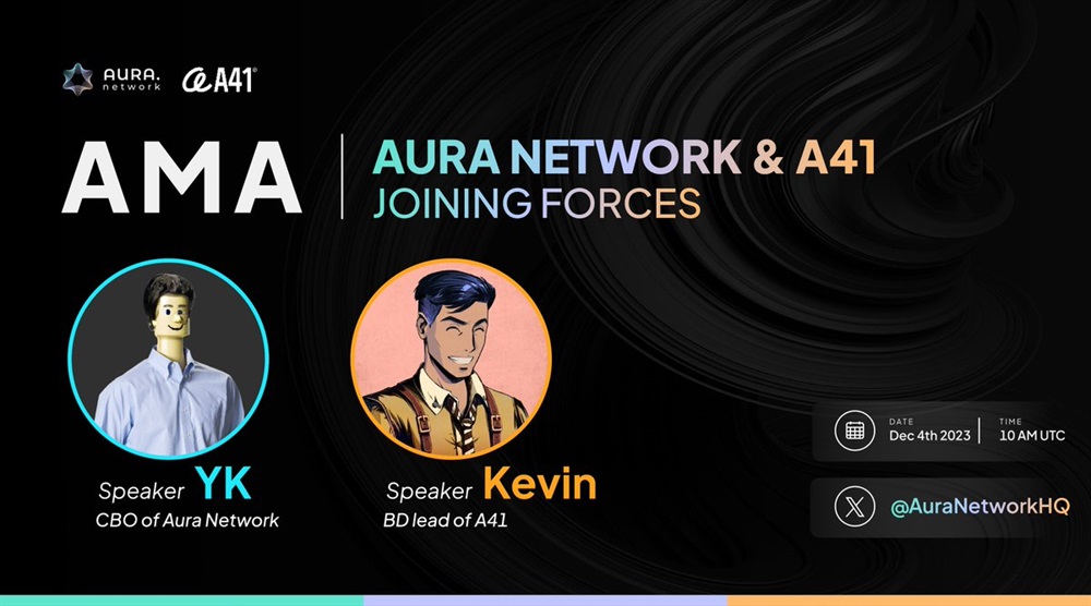 Aura Network will host an AMA on X with A41 on December 4th at 10:00 UTC. The session will delve into the story of A41 and their reasons for running a node on Aura.