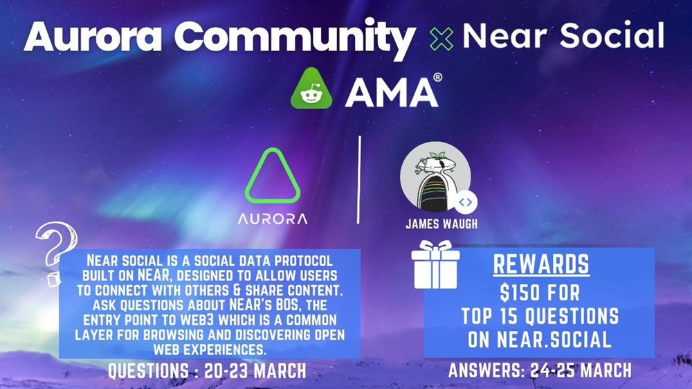 The Aurora Community will hold the first Reddit AMA on the @NearSocial_ platform ft. James Waugh ⚡️