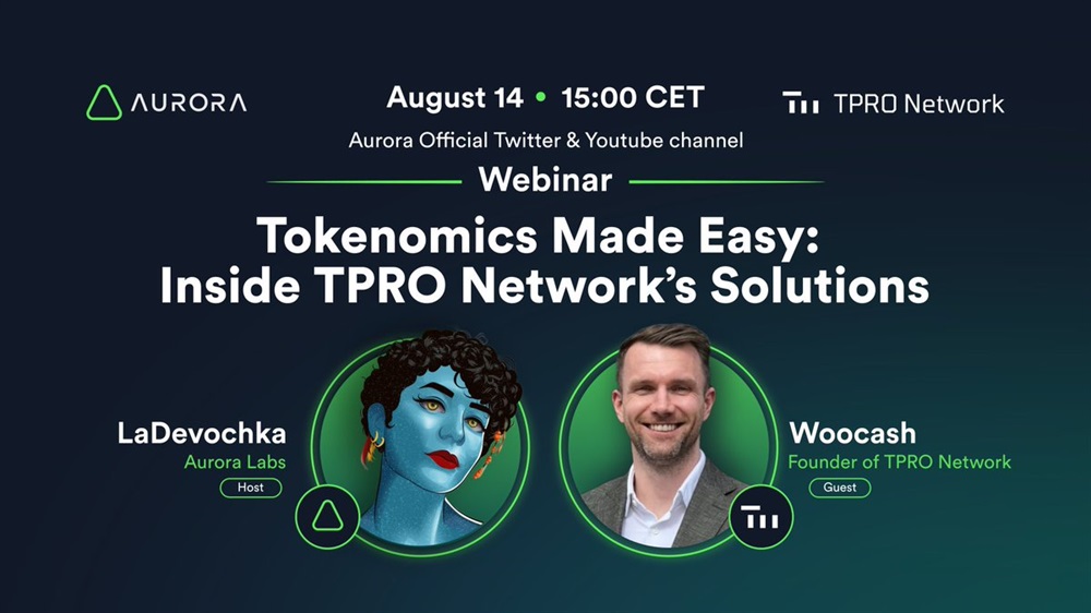 Aurora will host a webinar featuring the founder of Tpro.network on August 14th at 13:00 UTC. The focus of the webinar will be on TPRO’s latest solutions to challenges in crypto economics.