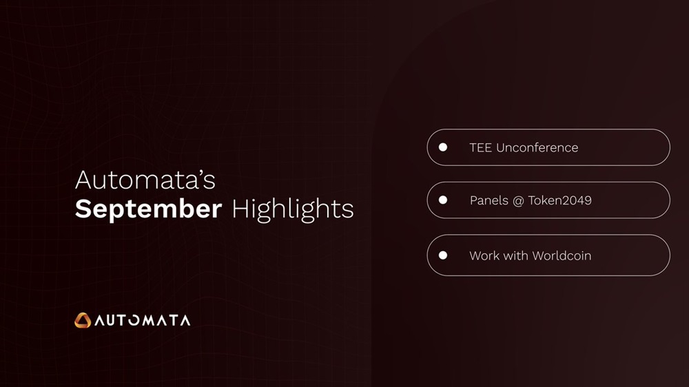 Automata has released a monthly report for September. There are some highlights of the months: co-hosting TEE Unconference with EigenLayer; participation in Token2049; collaboration with Worldcoin.