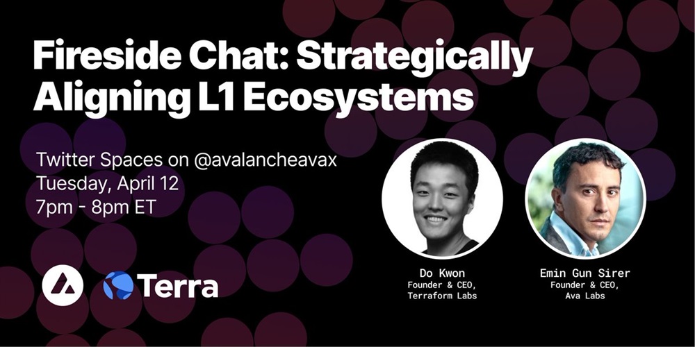 Want to hear more about the strategic collaboration between #Avalanche & @terra_money announced last week? Join the founders @stablekwon & @el33th4xor for discussion tomorrow about bringing these ecosystems together!