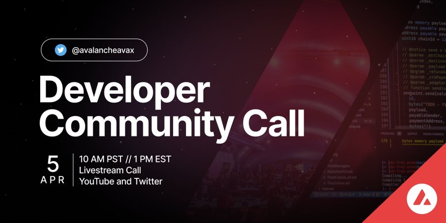 The Community Developer Call is a forum for devs to share, discuss, and learn about the most recent updates to the #Avalanche platform.