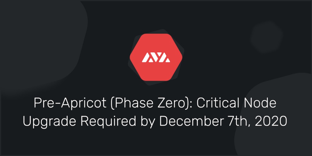 Today, we’re releasing Phase Zero of the pre-Apricot upgrade and asking validators to complete the upgrade by Monday, December 7th at 11 p.m. UTC (6 p.m. ET) to ensure continuity of your node on the network. Learn about the upgrade: